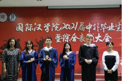 来自意大利的2019级留学生研究生代表戈程鹏在发言中表达了对汉语的热爱、对老师的感激以及对未来的憧憬,他表示自己将以“路漫漫其修远兮,吾将上下而求索”的探索精神,认识中国、理解中国、感知中国,做中外文明交流的友好使者。