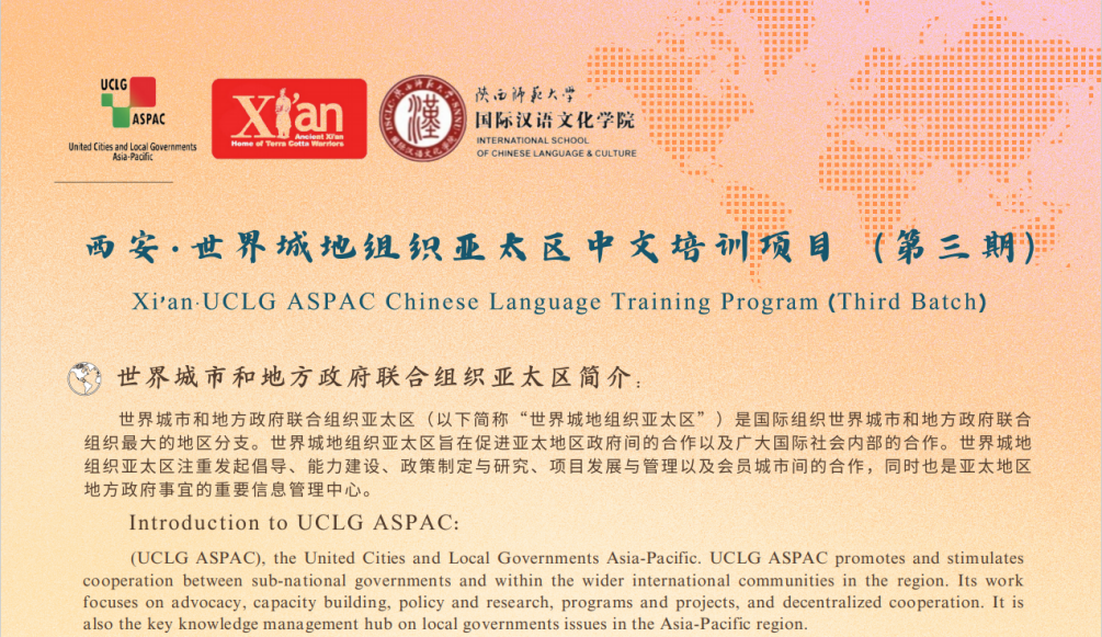 【国汉短期项目窗】2024年3月短期项目快讯“国汉短期项目窗”,信息速递不停歇!这里是伟德国际1946官网短期项目的快车道,速递最新、最热的项目资讯,随时随地掌握学院留学短期项目新动态.三月短期项目快讯三则——1.西安·世界城地组织亚太区中文培训项目(第三期)开班项目共招收来自7个国家的学员85名,学员主要为世界城地组织亚太区会员城市政府机构公务员;开设《基础汉语》、《交际汉语》、《中国概况》、《魅力西安·非遗...