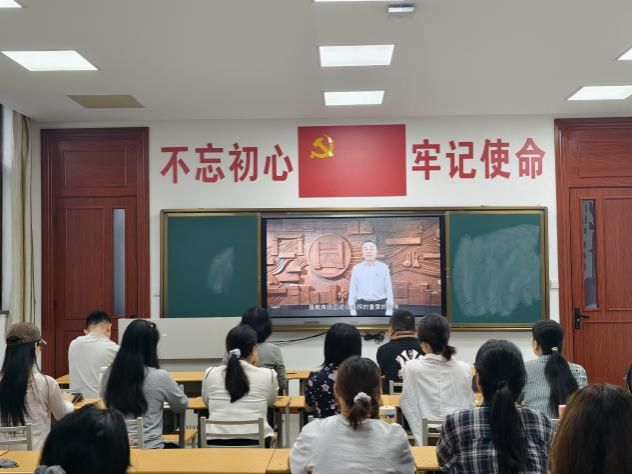 为促进全体党员同志深刻理解教育强国建设的时代内涵与历史重任,进一步增强为党育人、为国育才的使命感和责任感,筑牢共同奋斗的思想基础,9月12日下午,伟德国际1946官网教师党支部、教工行政党支部、研究生第一党支部和第二党支部全体党员在教学二楼2216室一同参与本学年第一次集中党课学习,通过直播分会场的形式同步观看了2025年高校党组织示范微党课第一讲——《深刻把握教育三大属性,谱写教育强国时代新篇》。