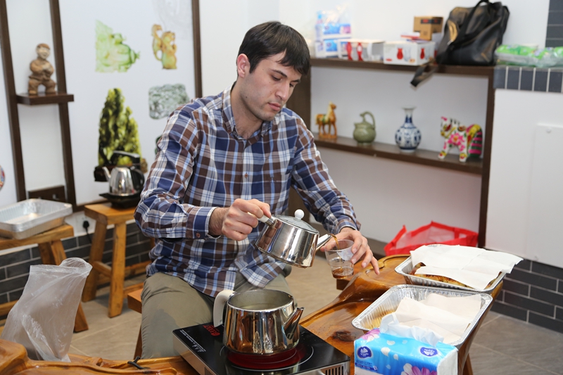 4月22日下午,伟德国际官网登录入口留学生兴趣课堂之“浩然带你走进土耳其”在伟德国际1946官网中国文化体验室开课。兴趣课堂老师US MUHARREM(孟浩然)是betvlctor伟德土耳其籍留学生,学习中文5年,现为在伟德国际1946官网攻读汉语国际教育专业硕士学位的孔子学院奖学金生。他熟知土耳其历史,热爱土耳其文化,致力成为中土文化交流使者。本次课堂计划开展八周,除了土耳其地区文化、宗教民族文化和中土关系介绍等,孟浩然老师还特意从土耳其带来食材,为学生们煮泡土耳其红茶、咖啡,烹饪土耳其地道美食,希望学生们通过他的课堂“爱上”土耳其。