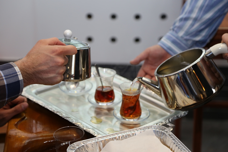 在简要介绍了土耳其的历史发展脉络之后,孟浩然老师重点向大家讲解了土耳其的地区分布、民族文化及粮食矿产资源情况。与此同时,另外两位来自土耳其的留学生志愿者为在场学生奉上了独具特色的土耳其红茶和面包甜点。据孟浩然介绍,土耳其红茶是通过丝绸之路由中国传播过去,经历了与当地民族特色漫长的磨合之后,发展成为今日独具特色的土耳其饮茶文化。如今,红茶已经成为土耳其人早餐中不可或缺的一部分,也衍化为土耳其饮食文化中匠心独运的一个篇章。