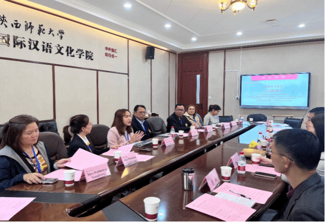 贾泽林副院长首先对与会嘉宾表示欢迎,并简要介绍了双方参会人员。随后,泰国暖武里府中等教育局教育督导Sirimas Jenhatthakankit女士分享了自身学习汉语的经历。她表示,汉语语法复杂、学习难度大,但拥有克服困难的信心是学好汉语的关键,所以她非常享受学习汉语的过程,同时她也表达了首次到访西安的喜悦之情。