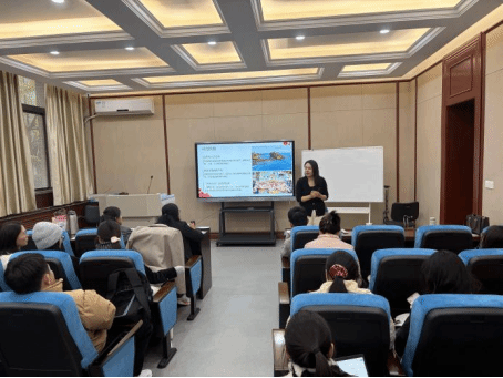 讲座伊始,孙建伟副教授介绍了嘉宾及主题。Putu Ayu Prabawati院长以温和语调问候师生,赞赏西安文化底蕴,展示新加拉惹市风光与气候,与同学互动并欢迎其赴印尼交流。她介绍伽内什师范大学发展历程、办学理念与成就,强调其对高素质中文教师的需求,学校通过多种活动推动中国、印尼青年友谊与跨文化理解,还分享了中秋节活动及“汉语桥”赛事参与情况。