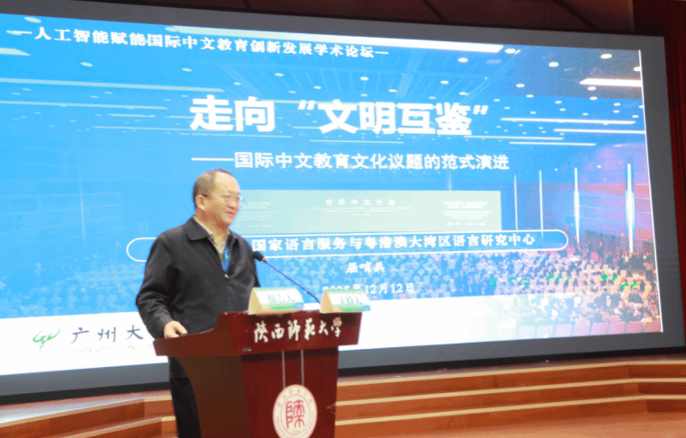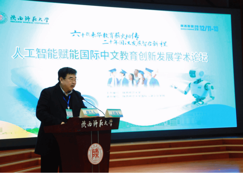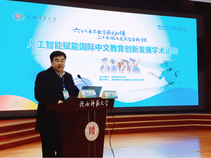 “人工智能赋能国际中文教育创新发展学术论坛”于2025年12月12日在伟德国际官网登录入口雁塔校区成功举办。此次学术论坛由伟德国际官网登录入口主办、伟德国际1946官网承办,来自华东师范大学、武汉大学、西安交通大学、中央民族大学、北京语言大学、浙江师范大学、广州大学等64所高校及科研机构的专家学者和师生200余人参与此次论坛。大会围绕AI在国际中文教育中的应用实践与挑战、师资发展与人才培养、教材创新与资源共享、智能评估与伦理规范等关键议题展开研讨。