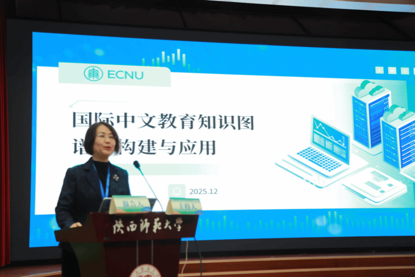 郑艳群教授以《AI赋能下中文教师数字素养提升的路径与意义》为题进行报告,基于《国际中文教师数字素养参考框架(2025)》,探讨 AI 赋能下数字素养提升的主要路径,包括技术理解、多模态资源应用、智能教学设计、学习数据分析与基于证据的教学改进。郑教授强调,AI不仅可以改变教学工具,更将重塑中文教师在语言理解、跨文化沟通和技术伦理中的专业角色。