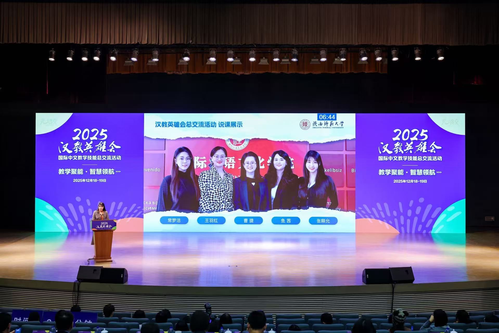 “汉教英雄会”活动自创办以来,已成功举办六届,如今已成为国际中文教育领域极具影响力的品牌盛事。本届交流会以“教学聚能 智慧领航”为主题,从东北、华北、华东、西南、西北、中南6个片区140所院校182支团队推选出的36支交流团队,与来自东南亚、中亚、非洲、拉美四个区域的11位本土中文教师代表同台切磋教学技艺。本届活动中,伟德国际1946官网教师团队和学生团队凭借在西北片区交流活动中的出色表现,双双成功进入全国总交流活动环节,最终分获“最佳教学组织团队”和“最佳教学设计团队”荣誉称号,并赢得专家和同行的广泛赞誉。