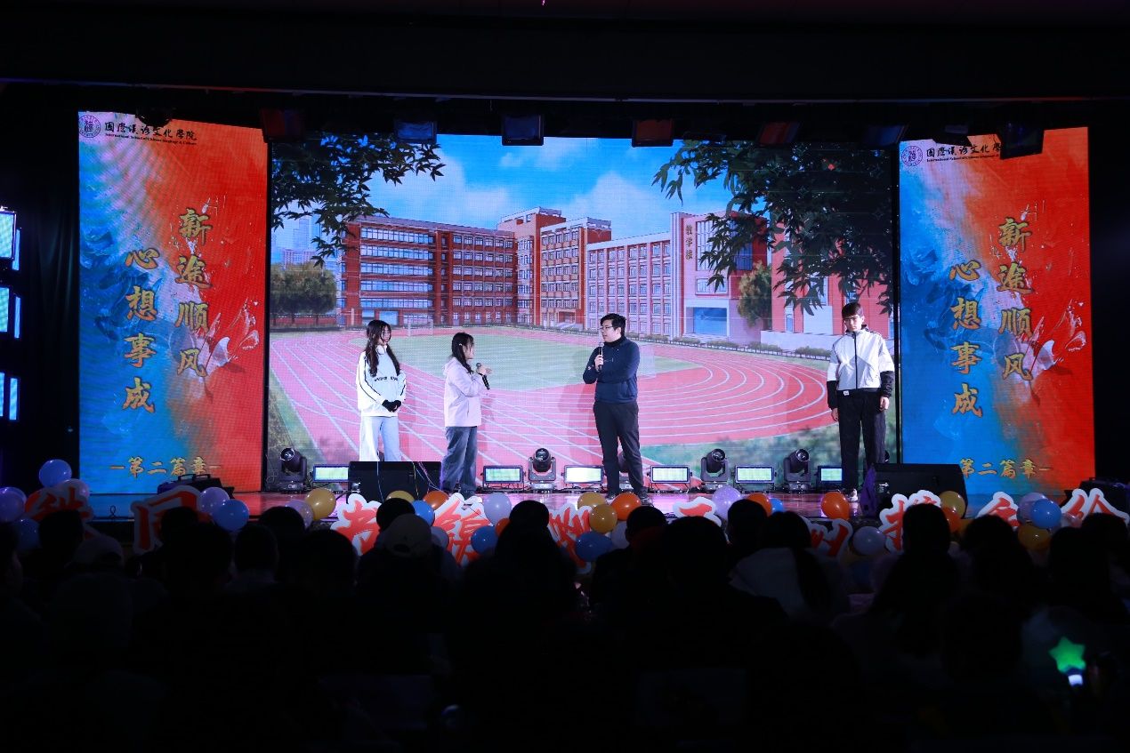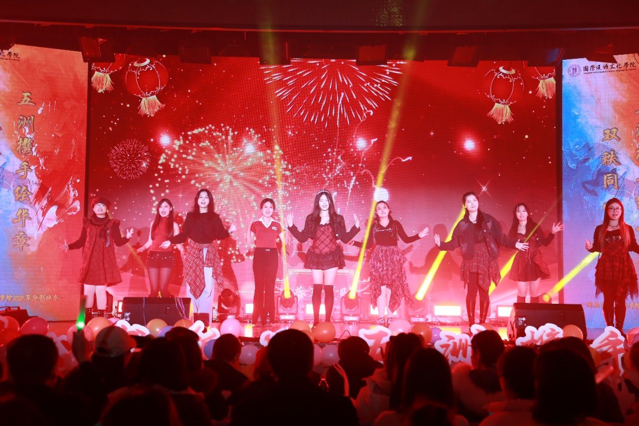 岁序更替,华章日新。为欢迎来自五湖四海的新同学,增进中外学子的文化交融与情感联结,伟德国际1946官网 “双秩同心书锦绣,五洲携手绘华章”2026年迎新晚会于2025年12月17日圆满落幕。学院党总支书记李小玲、院长石洛祥等领导、全体师生及来自世界各地的中外学子齐聚一堂,共赴这场融合青春活力与多元文化的盛宴。整场晚会以 “同、心、携、手” 为脉络,四大篇章层层递进,中外学子与师生同台献艺,用歌舞、朗诵、情景剧等多元形式,奏响了青春与梦想的交响,展现了国际化校园的独特魅力。