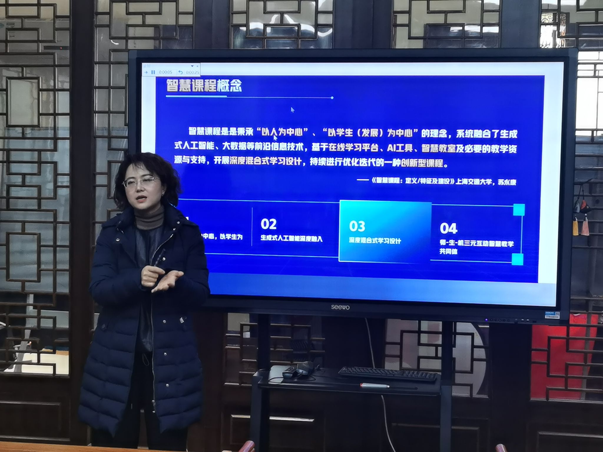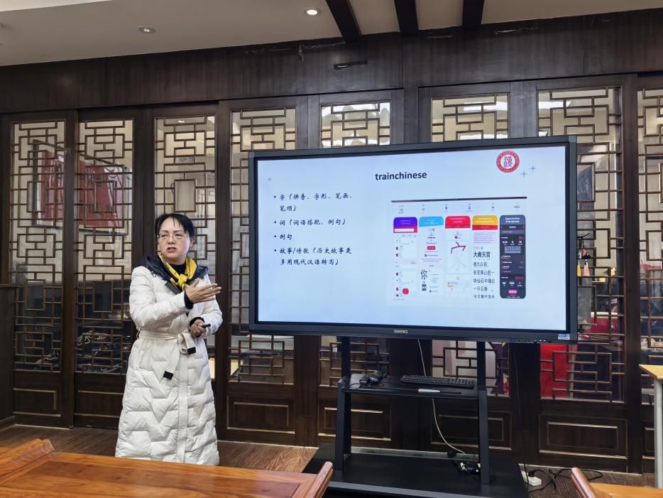 活动伊始,科大讯飞高级工程师刘新宇带来了国际中文智能教学系统的专题培训。她从系统核心功能、操作流程、教学适配场景等方面进行了细致讲解,结合具体案例演示了系统在资源生成、互动教学、学情分析等环节的应用优势,帮助在场教师快速掌握了智能教学工具的使用方法,为后续教学实践奠定了坚实的技术基础。