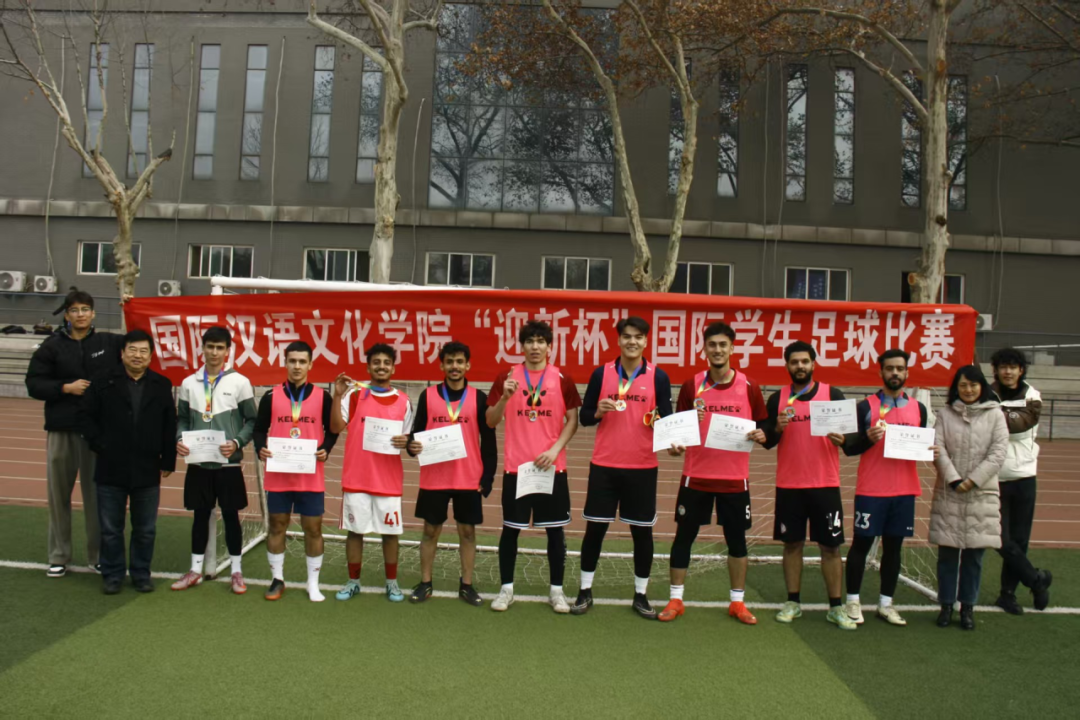 为了让来自世界各地的留学生们在竞技与协作中深化友谊,共筑归属,伟德国际1946官网在雁塔校区田径场举办“迎新杯”国际学生足球赛。来自二十余个国家的7支队伍参加比赛,本次比赛历时一个月,经过11场的激烈角逐,于2025年12月30日完赛,学院院长石洛祥、党总支书记李小玲、党总支副书记王钰、团委书记翁思洁、留学生辅导员张欣元、留管干部刘小熊参加颁奖仪式。