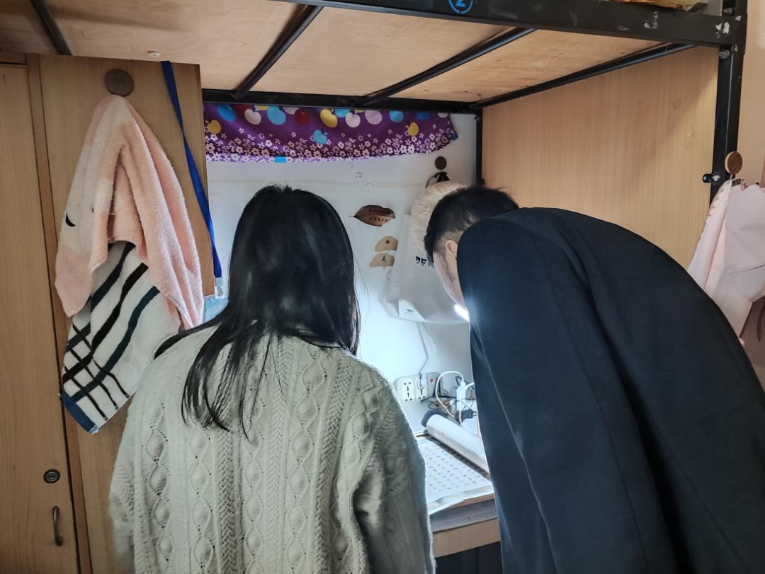 为了进一步提高同学们的安全意识,并帮助同学们尽快调整状态,推动营造文明和谐、卫生整洁的宿舍环境,3月2日下午,伟德国际1946官网党总支副书记张昊、国际学生辅导员张欣元、兼职辅导员陆源、兼职国际学生辅导员李颜琴等,走访了中外学生宿舍,深入了解学生情况,主动关注学生诉求,以确保新学期各项工作的顺利进行。