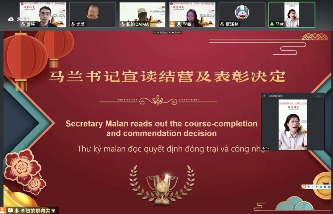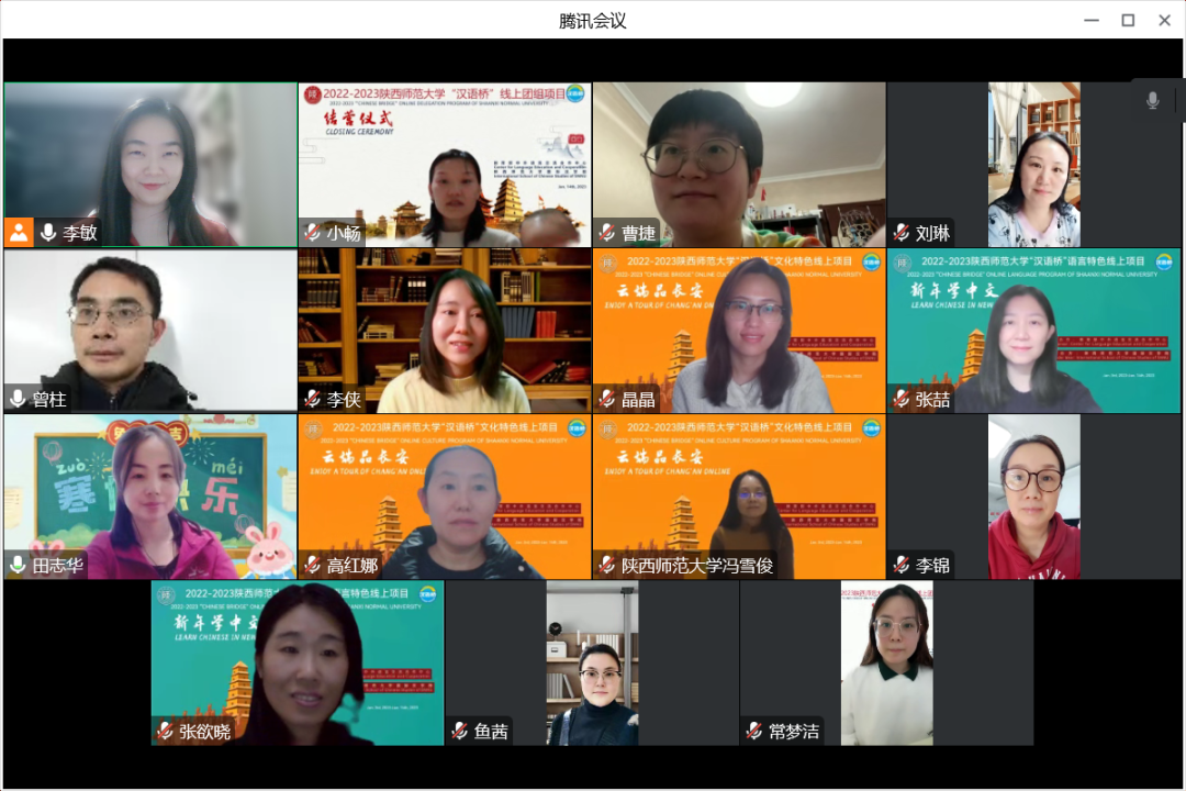 2023年1月14日,由教育部中外语言交流合作中心主办、伟德国际1946官网承办的2022-2023年度“汉语桥”线上团组项目圆满结营。在全体参与人员的共同努力下,本次活动取得了良好成效。