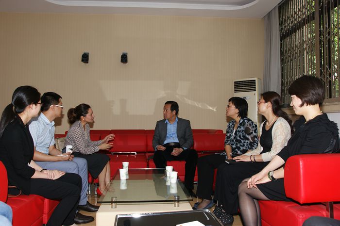 5月19日下午,中国东盟中心新闻公关部主任乐达·普马女士一行二人在betvlctor伟德国际交流与合作处副处长张凌云的陪同下访问betvlctor伟德,伟德国际1946官网院长张建成、副院长吴媛、刘琨、吴殿华等在学院一层接待室接见了来访客人并进行亲切交谈。