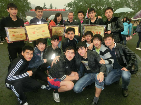 在三天的比赛中,学院中外运动健儿们在赛场上各显身手,赛场下2011级对外汉语专业啦啦操队员、看台观众们也用热情的舞蹈和响亮的口号为运动员们加油助威。同学们文明观赛,积极投稿,体现了伟德国际1946官网学子良好的精神风貌。学院为运动员们准备了矿泉水、巧克力等补充能量。18日大雨浇灌了整个运动场,可是我们的同学们毫不退缩,以火一般的热情坚持到了最后。