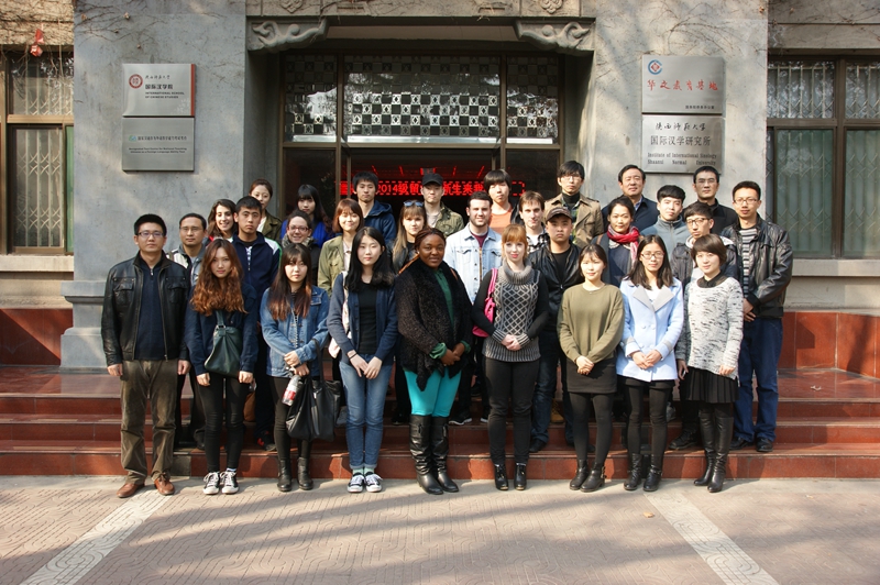 最后,学院领导与到场的留学生新同学们在汉学院门前合影留念。