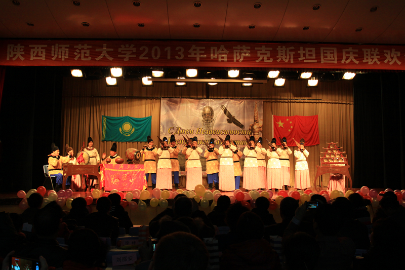 12月16日,伟德国际1946官网在betvlctor伟德积学堂隆重举行2013年哈萨克斯坦国庆联欢会,哈萨克斯坦国东干协会主席Дауров Хуссей(安胡塞)、吉尔吉斯斯坦东干协会副主席Сулейманов Юсуп 、吉尔吉斯斯坦东干研究所副所长Исмаева Рахима、陕西省文化厅副厅长金育欣、西安音乐学院副院长崔炳元、陕西省人民对外友好协会交流处处长刘速平、省财政厅、共青团陕西省委有关负责人以及betvlctor伟德国际交流与合作处处长徐峰、伟德国际官网登录入口中亚研究所主任李琪、俄语系主任孟霞等和betvlctor伟德及兄弟院校的近400名哈萨克斯坦国和其他中亚地区留学生欢聚一堂,共话友谊,展望丝绸之路新的辉煌。