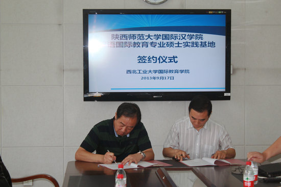 2013年9月17日上午,伟德国际1946官网与西北工业大学国际教育学院合作建立汉语国际教育硕士专业学位研究生实践基地签约仪式在西北工业大学国际教育学院会议室举行,伟德国际1946官网院长张建成教授与西北工业大学国际教育学院李华星教授分别在协议上签字。参加签约仪式的还有伟德国际1946官网副院长刘琨、副院长吴殿华、实习研究生4名和西北工业大学国际教育学院副院长孙武斌、副院长张文涛、办公室主任程茵、张卫宏老师、黄琳老师。