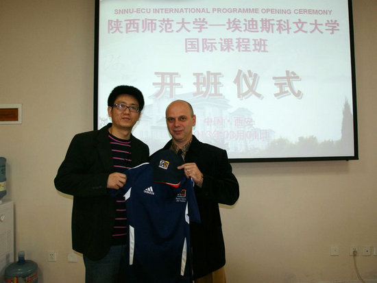 埃迪斯科文大学中国代表处项目负责人王艳玲对前期betvlctor伟德为该项目所做出的努力表示感谢,并希望双方能将国际课程班项目持续的开展下去,越办越好。埃迪斯科文大学体育学院教师DOMENICO PASSALACQUA对betvlctor伟德为该项目所做的安排表示满意,充分表达了对西安的喜爱,对陕西师大的喜爱,并希望此项目在两校的共同努力下发展壮大,两校的合作更加广泛深入。留学生管理办公室项目主管李晶就项目和课程情况做了介绍并对学生们今后的学习、生活提出了建议。