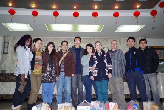 伟德国际1946官网慰问2013年春节在启夏苑居住的外国留学生们