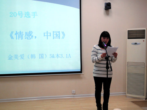 谈到学习汉语,韩国的崔承元“忿忿不平”地说自己很不高兴学校放假,因为会影响自己的汉语学习。他围绕《我为汉语狂》的主题讲述了他学习汉语的坚毅,得到大家赞许的掌声。同样是来自韩国的金美爱,情感真挚的讲述自己与姥爷的动人故事,表达了对故乡的深深思念;两年多的中国生活也让她深深爱上中国这片土地,热爱这美丽的第二故乡。