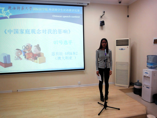 评委代表邵英老师在活动结尾做了点评。她说,学生们通过自己真实的经历展示了自己学习汉语的感受,用汉语分享自己对父母、对故乡的思念,这不仅是对学生们学习成果的展示,也是对老师们教学成果的展示。邵英老师肯定了学生们的精彩表现,鼓励学生们要更加努力的学习汉语,并预祝将代表betvlctor伟德参加陕西省留学生汉语演讲比赛的八位学生取得优异的成绩。