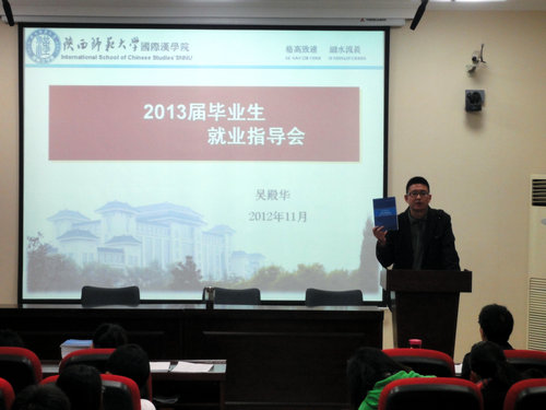 为帮助2013届毕业生开阔就业视野,提升就业能力,11月2日上午,伟德国际1946官网在教学二楼一层报告厅举行2013届毕业生就业指导会。学院副书记吴殿华、辅导员胡丹参加了此次会议。