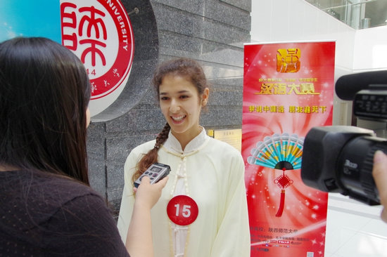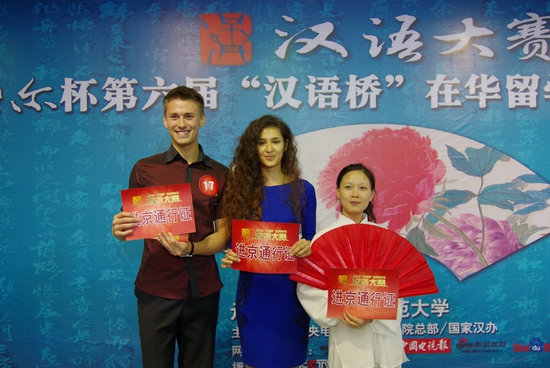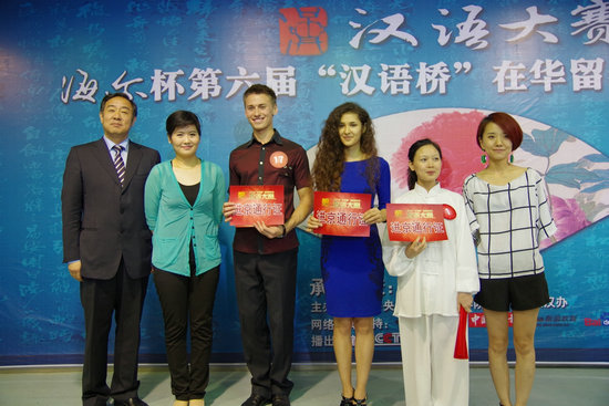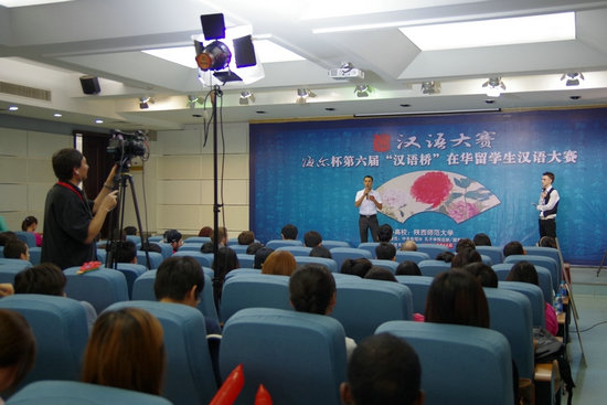 betvlctor伟德韩国留学生金美爱和土耳其留学生郭少鹏也一同进入有望进京的6人候选名单,与来自其他高校的4名留学生一起通过30秒的拉票展示环节竞争另外2名进京名额。最终,来自西北大学的张秋恒和来自西安外国语大学的成大龙幸运地脱颖而出,获得了进京决赛资格。其他进入候选名单的选手还有机会通过央视网(CNTV)、新浪微博、腾讯微博、人人网和微信等方式争取网友支持,通过“网络复活”获得进京决赛资格。