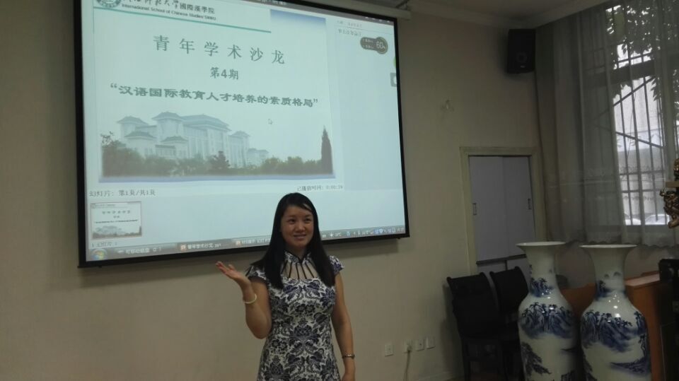沙龙围绕着“汉语国际教育硕士培养的素质格局”这一主题,主要讨论了汉语国际教育人才培养的三种模式——研究型、应用型和实践型,人才培养中存在的问题以及可采取的相应改革措施。沙龙活动中,与会者首先专心聆听了李锦老师的汇报,随后畅所欲言,纷纷就议题中的相关问题展开了讨论。吴媛老师提出导师应培养学生良好的学术习惯,增强理论指导实践的能力;邵英老师提出应当加强学生的管理,制定可行的制度纪律,科学处理学生国内学习和国外实践的关系;周利芳老师针对学生普遍基础薄弱的问题提出,在人才培养的过程中应当将主要精力用于专业基础知识的学习和实践,加强考试和考查的力度。此外,硕士生导师张建成、宋林生、王作良、曾小梦、刘琨以及任课教师冯雪俊、刘琳、田志华、高红娜也从各自角度对汉语国际教育硕士的培养提出了很多有意义的建议和意见。