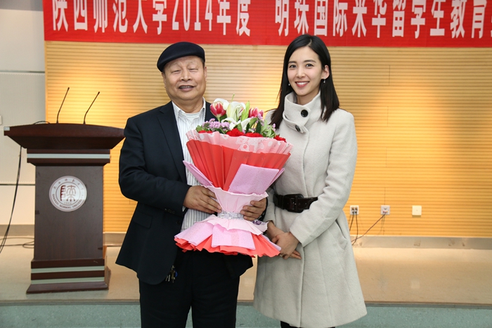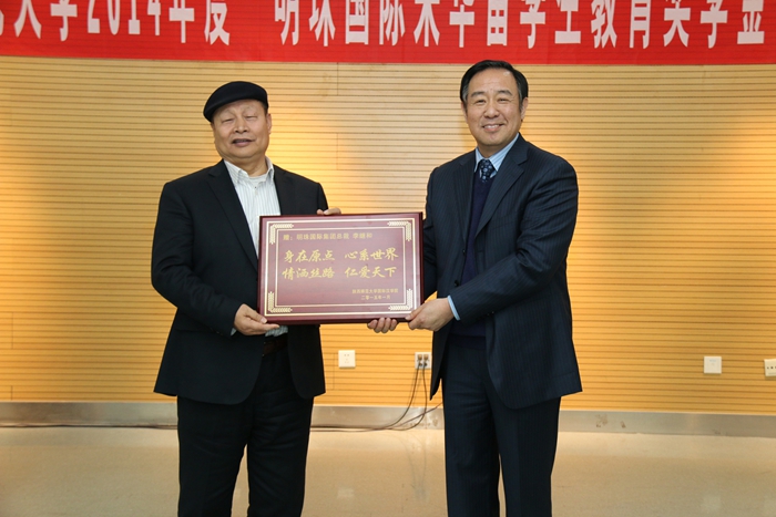 颁发仪式后,学校党委副书记王涛在启夏苑与李继和董事长举行了工作会谈,代表学校再次感谢明珠国际集团对陕西师大留学生教育事业的支持,希望在2015年推动双方的校企合作取得更大成绩。