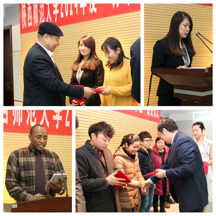 1月8日下午,2014年度“明珠国际来华留学生教育奖学金”颁发仪式在雁塔校区崇鋈楼闻道堂举行。陕西明珠国际集团董事长李继和、家居营运中心总经理刘鹏、伟德国际官网登录入口副校长游旭群、伟德国际1946官网院长张建成以及41名获奖师生和伟德国际1946官网部分师生参加了颁发仪式。伟德国际1946官网副院长吴媛宣读了获奖师生名单。仪式由伟德国际1946官网副院长吴殿华主持。