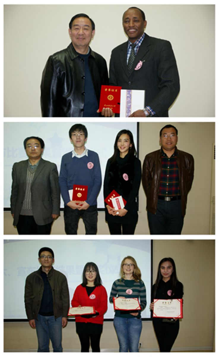 经过激烈比拼,来自埃塞俄比亚的赵永亮以94.6分的高分一举夺魁,来自韩国的徐甜雨、哈萨克斯坦的刘帆夺得第二名,来自奥地利的朱莉娅、乌兹别克斯坦的婉君、韩国的高境彬获得第三名。伟德国际1946官网院长张建成、学生处副处长曲洪刚和教务处副处长刘先锋、伟德国际1946官网副院长吴殿华分别为一、二、三等奖获得者颁发了荣誉证书和奖品。