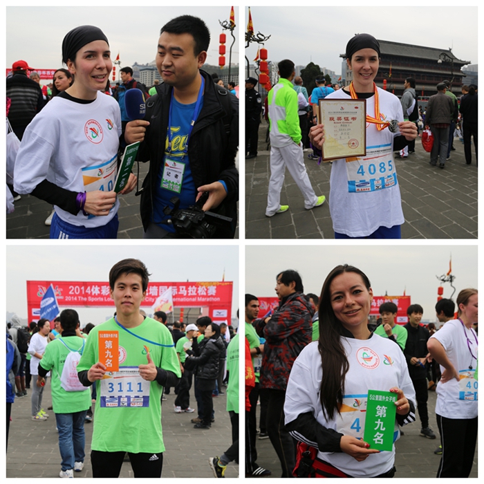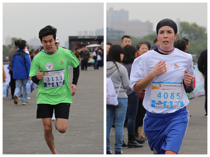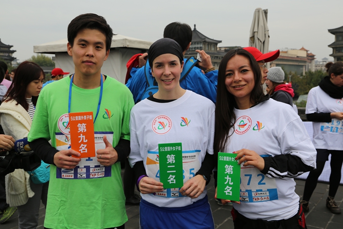 11月1日上午,2014西安城墙国际马拉松比赛在南门城墙如期举行,betvlctor伟德60余名留学生踊跃报名参与比赛。意大利籍留学生张羽翔勇夺国际女子5公里组亚军,韩国籍留学生金珍佑、厄瓜多尔籍留学生朱海玲分别斩获国际男、女子5公里组第九名的好成绩。