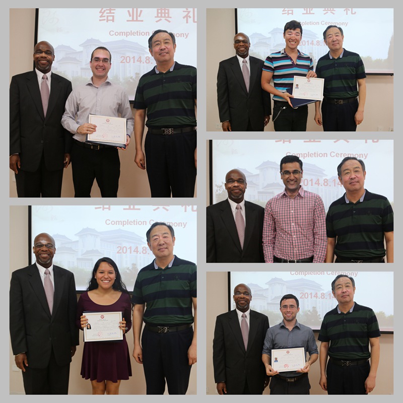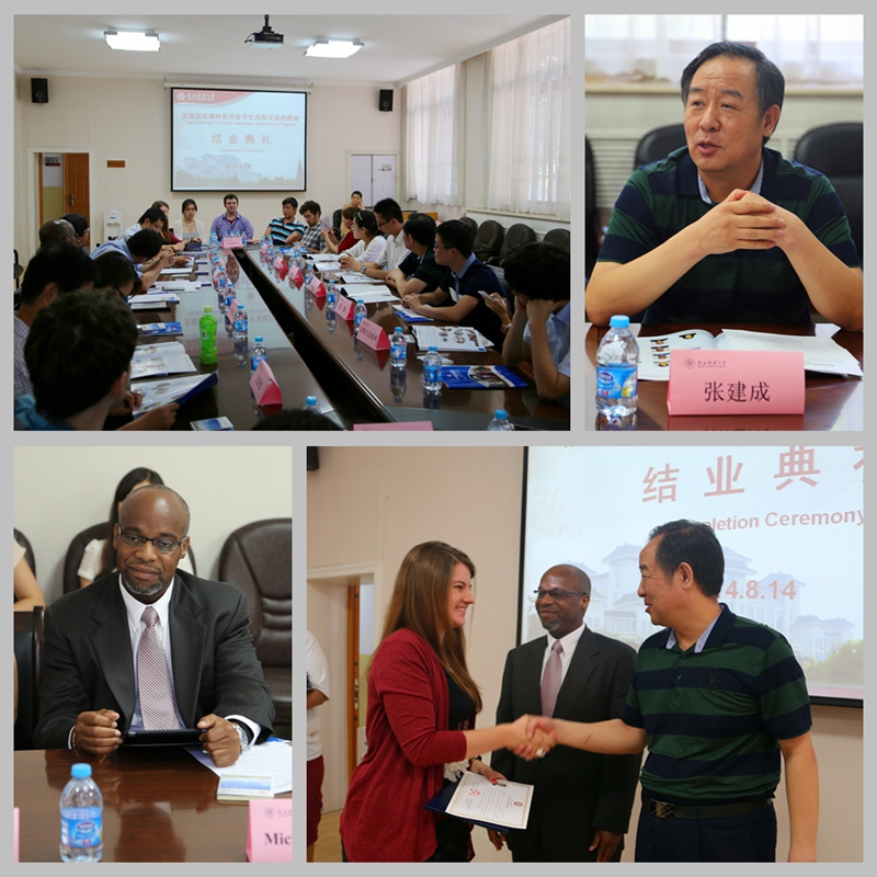 Michael Tull先生对betvlctor伟德伟德国际1946官网为该项目的顺利实施所付出的努力表示感谢和肯定,并希望双方能以此为契机开展更多优质项目的合作。张建成院长对所有参与到富布莱特-海斯项目的各企事业单位表示感谢,并希望16名美国学生能够把自己在中国的感悟与经历带回美国,用他们的影响力去帮助自己身边的人了解真实的中国,为中美两国关系的良好发展做出积极的贡献。结业仪式上,张建成院长和Michael Tull先生分别代表富布莱特-海斯项目的培养单位和组织方为学生颁发了结业证书。