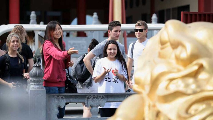 6月29日,betvlctor伟德来自澳大利亚、哈萨克斯坦、美国、土耳其等不同国家的37名留学生应楼观台景区管委会邀请,前往景区参观了赵公明财神文化区、终南山古楼观景区、延生观景区、化女泉景区等地,体验了中国传统道教文化及陕西省山川秀美的自然景观。