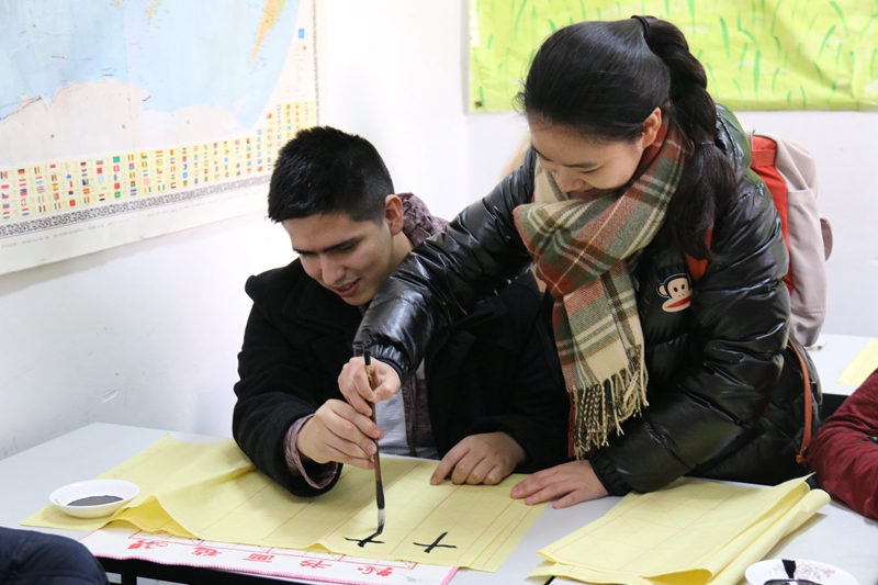 首先,来访师生与betvlctor伟德留学生管理办公室相关工作人员进行了简单交流和互动,介绍了双方的学校概况和项目内容。会后betvlctor伟德为来访师生安排了历史文化讲座及中国书法体验活动。在中国学生的陪同下,美方师生体验了博大精神的中华文化和汉字魅力。