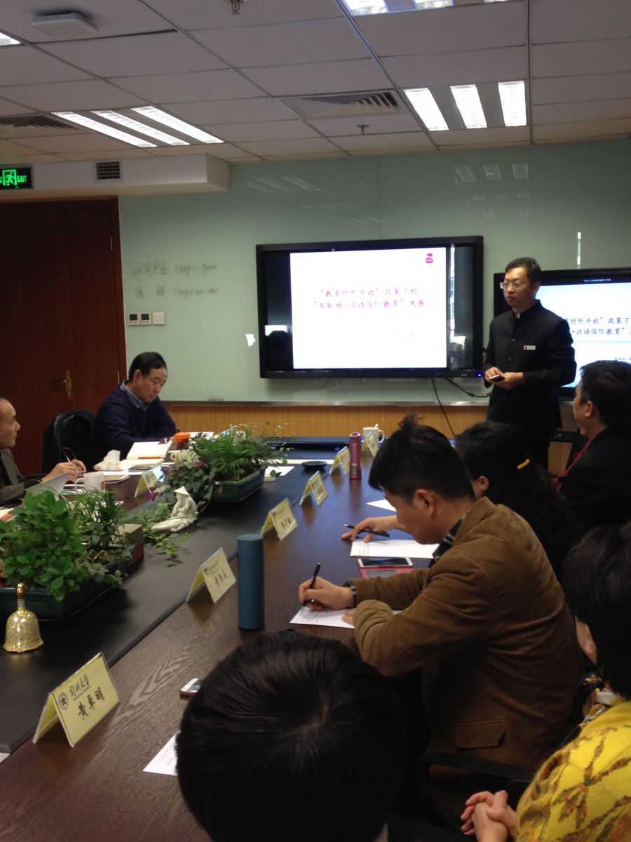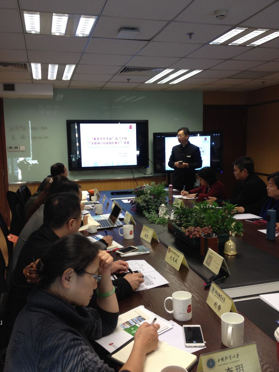 随后,与会的包括北京语言大学人文学院和教师进修学院教授、北京语言大学出版社汉语教材总编审、国家汉语水平考试委员会顾问委员会委员、世界汉语教学学会理事刘珣教授在内的来自北京语言大学、北京联合大学、首都经济贸易大学、四川大学、西南大学、江苏大学、中国地质大学(武汉)、郑州大学、云南师范大学、河北师范大学等全国8个省、直辖市的11所高校汉语国际教育和网络信息技术等方面的近30名专家学者,围绕“互联网+华文教育暨汉语国际教学新模式探索”的主体以及唐风汉语在互联网+华文教育暨汉语国际教学”方面的探索和实践成果,就如何通力合作,协同创新,建设优质数字化华文教育教学资源和成果共享平台,实现优质华文教育及汉语国际教学资源开放共享,推进华文教育及汉语国际教学向标准化、专业化、信息化方向迈进进行了深入的研讨。