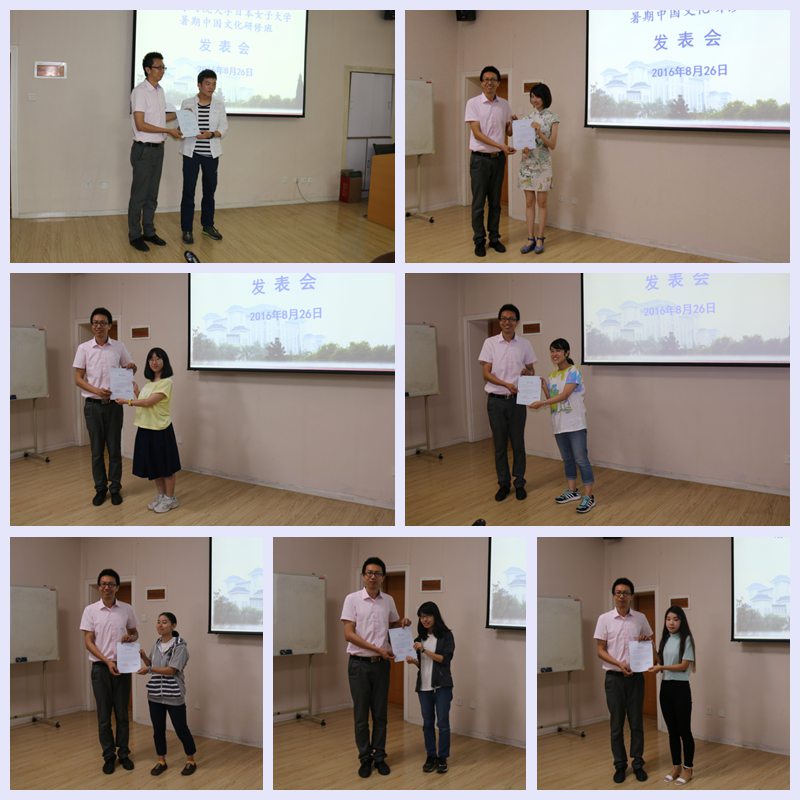 报告会结束后,市来弘志老师、山下将司老师逐一对学生们的研究报告做了点评和总结。最后,留学生管理办公室主任蔺丰辉向日本短期班学员颁发了结业证书。