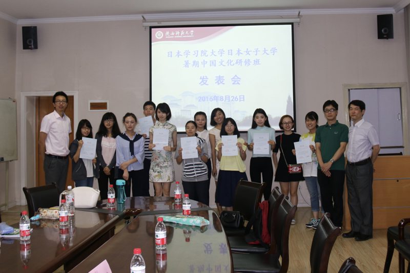 8月26日上午,日本学习院大学和日本女子大学暑期汉语言文化研修班报告会及结业仪式在伟德国际1946官网一层会议室顺利举行。日本女子大学带队教师山下将司,伟德国际官网登录入口外国语学院日语系外教市来弘志,betvlctor伟德留学生毕业生、长安大学日语系外教小林雄河,留学生管理办公室主任蔺丰辉以及七名学习院大学和日本女子大学的学生、六名中国学生语伴参加了本次报告会和结业仪式。