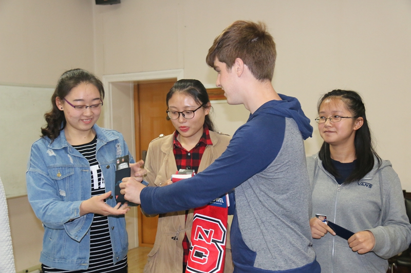 交流结束后,双方学生互赠了礼品,大家都很感谢学院和美中经济文化协会提供了一次让中美学生互相了解的机会,同时也期待此类活动的再次举办。最后,双方学生在伟德国际1946官网门前合影留念,为美国北卡州大学生访华团的陕师大之行画上了圆满的句号。