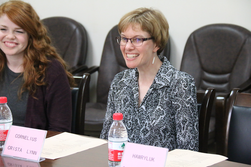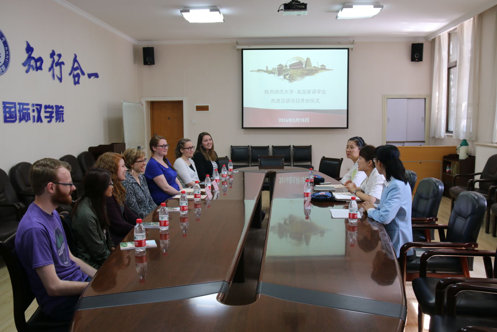 由伟德国际官网登录入口( SNNU )和美国英语学会(ELIC)合作的“西进汉语项目”之北美大学初级汉语课程班开班仪式,于2016年5月18日下午,在伟德国际1946官网会议室举行。“西进汉语项目”主任田媛老师(Crista Cornelius),伟德国际1946官网副院长刘琨,留学生办公室李晶,任课教师苗宇,项目的6名学员参加了开班仪式。仪式由李晶老师主持。