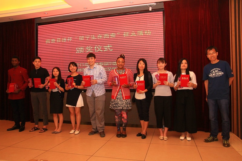 陕西省写作学会会长、“留学生在西安”征文特邀评委刘路介绍了征文活动的评奖原则。随后,西安日报社副总编辑程建设宣读了《“留学生在西安”征文活动获奖者名单》,本次征文活动共评选出30名获奖者,其中一等奖3名,二等奖6名,三等奖9名,优秀奖9名,纪念奖3名。现场嘉宾为获奖者依次颁发了荣誉证书和奖品,在紧接着的图书抽奖环节中,每名获奖者抽取了一本图书作为额外奖励。