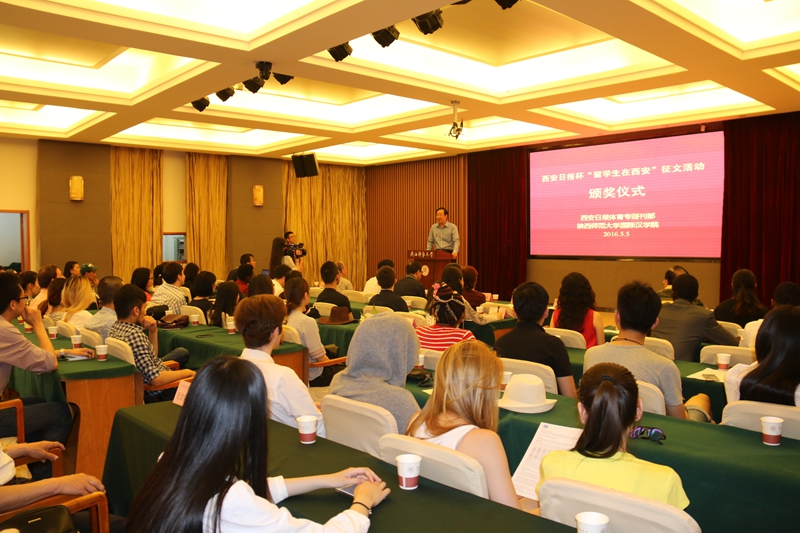 5月5日下午,“留学生在西安”征文活动颁奖仪式在betvlctor伟德雁塔校区启夏苑多功能厅举行。中共西安市委对外宣传办公室主任、西安市人民政府新闻办公室主任张晓宁,西安日报社副总编辑程建设,西安日报社体育专副刊部主任杨利英、副主任郝福建,西安日报社高级编辑、“留学生在西安”征文主持编辑庞进,陕西省写作学会会长、“留学生在西安”征文特邀评委刘路,betvlctor伟德党委宣传部部长孔祥利,伟德国际1946官网院长张建成,副院长吴媛以及来自西安交通大学、长安大学、西安外国语大学及betvlctor伟德的获奖教师、学生代表共60余人参加了颁奖仪式。仪式由伟德国际1946官网副院长吴殿华主持。