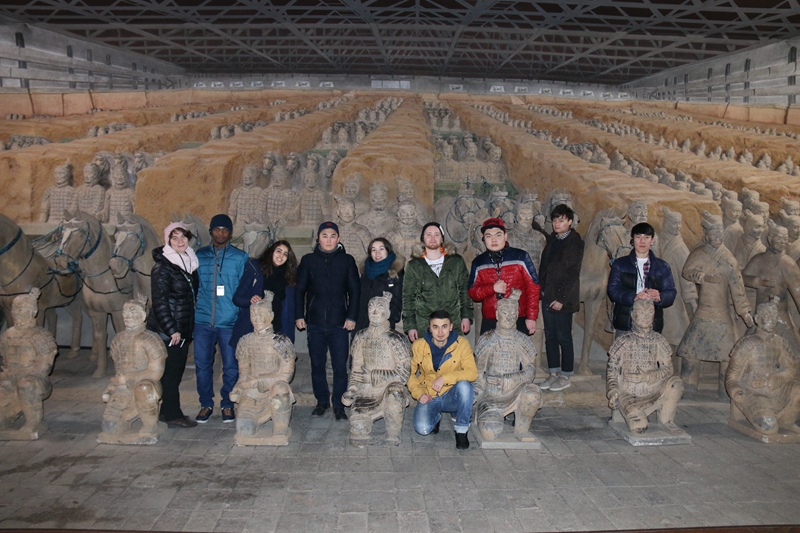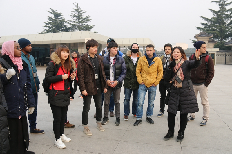 2015年12月19日下午,来自巴基斯坦、摩洛哥、苏丹、毛里塔尼亚、乌兹别克斯坦、马里、澳大利亚等13个国家的35名留学生在betvlctor伟德留办老师的带领下参观了秦始皇陵兵马俑。秦始皇陵兵马俑作为世界第八大奇迹,是西安旅游形象的标志,也是betvlctor伟德每学期组织留学生语言实践活动必去的景点之一。一直以来,留学生们都期盼着能够近距离的一睹兵马俑的真容。