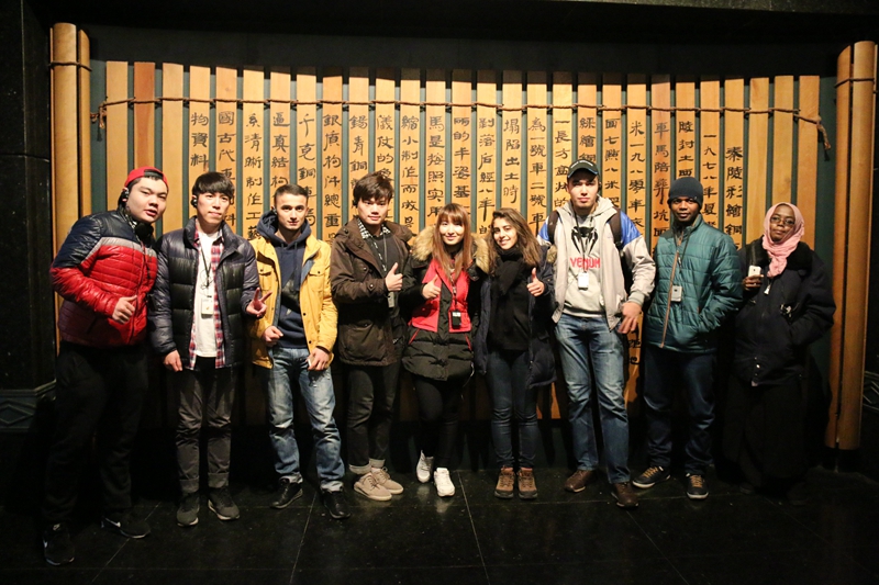 当天下午,在汉语和英语两名讲解的依次带领下,35位留学生分两组对三个已经开放的俑坑及秦始皇帝陵文物陈列厅进行了参观。在讲解的介绍中,学生们对于秦始皇修建兵马俑的历史背景有了一定的了解。庞大的秦俑兵阵及精美的青铜车马给留学生们留下了深刻的印象,他们纷纷举起相机与兵马俑合影,纪念这次难得的旅行。