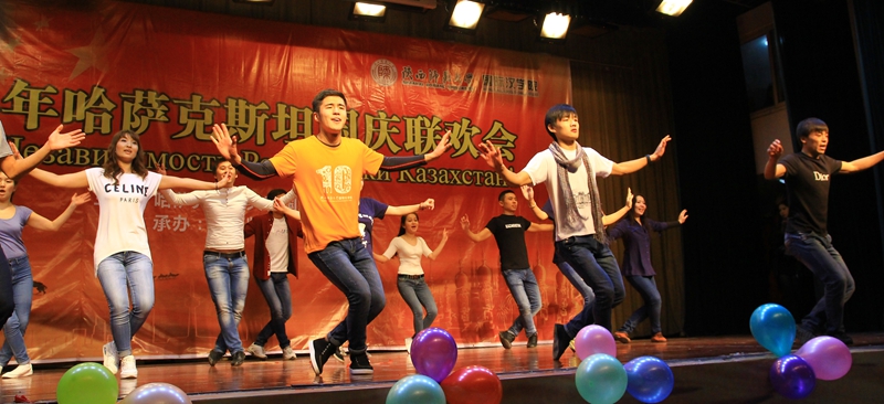 随后,哈萨克斯坦留学生表演了精彩的文艺节目。曼妙的哈萨克斯坦舞蹈、悦耳的哈萨克斯坦民族乐器冬不拉琴演奏以及豪放的哈萨克斯塔歌曲,让全场观众深深体会到了哈萨克斯坦的文化魅力;小品《卡伊尔汗的故事》独具匠心的设计得到了嘉宾和观众的一致赞誉;活力十足的现代舞表演、富有中国魅力的武术表演也为全场观众们献上了一场别开生面的视听盛宴。