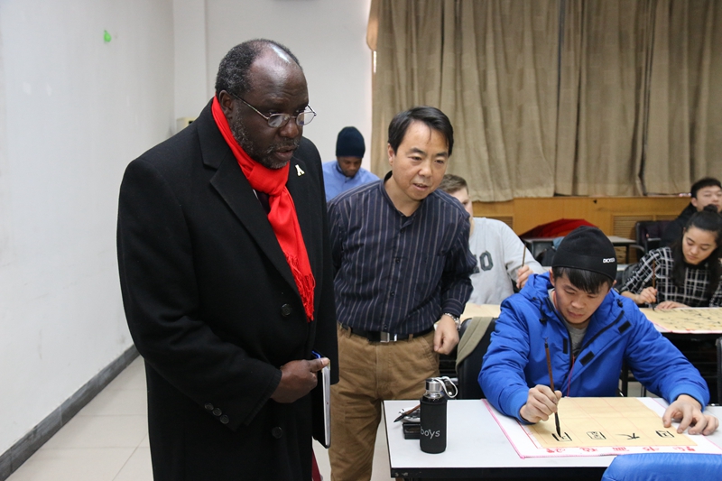 会后,Jesse副校长还观摩了betvlctor伟德留学生中国民族舞及书法选修课,与学生亲切交谈。