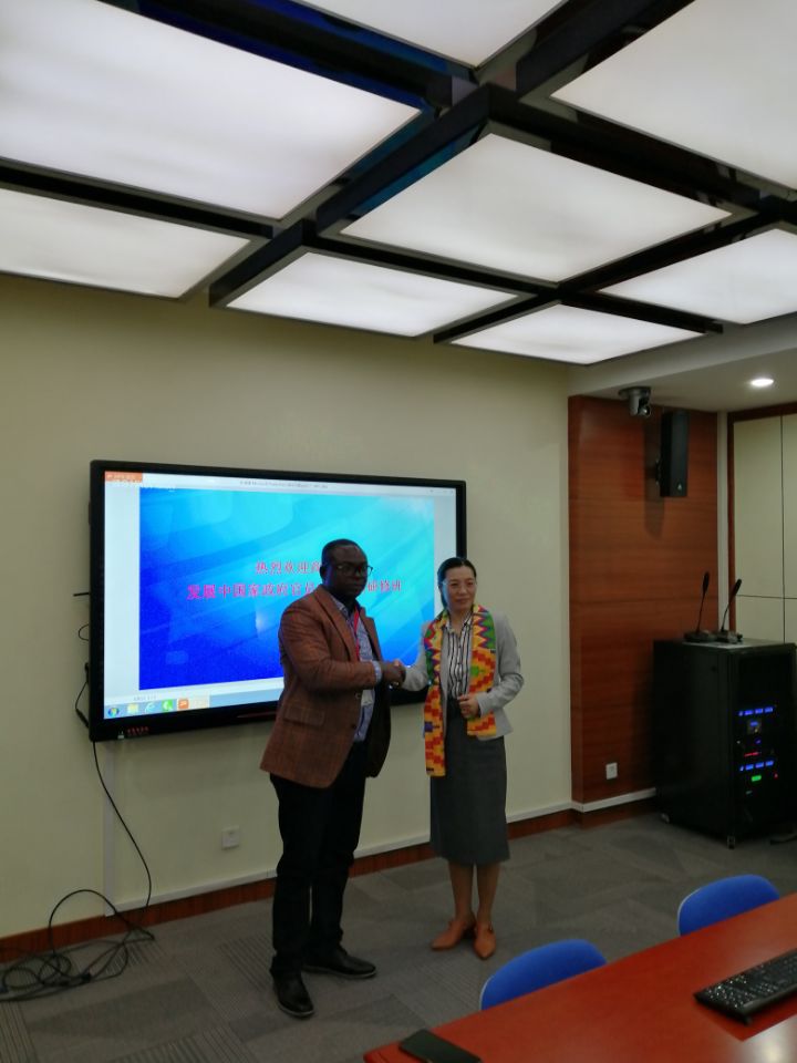 9月17日下午,由中华人民共和国商务部主办,北京国际汉语研修学院承办的国家援外培训项目——“发展中国家政府官员汉语研修班”学员来betvlctor伟德参观考察。来自印度尼西亚、斯里兰卡、古巴、加纳、巴拿马等亚洲、北美洲、非洲和南美洲12个发展中国家的38位司处级官员参加了此次活动。
