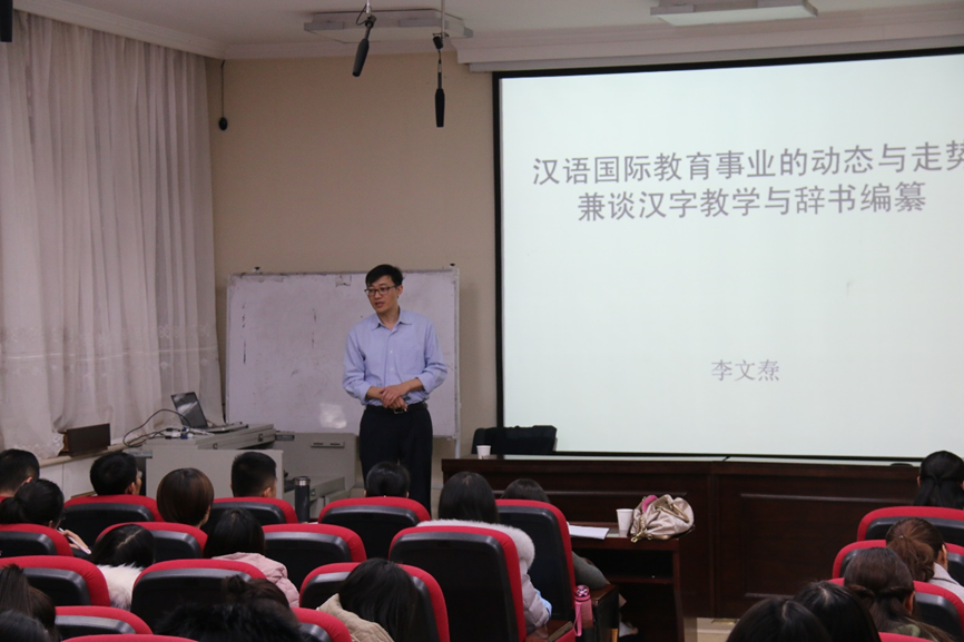 12月6日下午,冬日的西安已经有了丝丝寒意,伟德国际1946官网的报告厅里却是济济一堂,暖意融融,北京师范大学博士、匈牙利赛格德大学客座教授李文焘应邀作了题为“汉语国际教育事业的动态与走势——兼谈汉字教学与辞书编纂”的讲座。betvlctor伟德多位教师和全体研究生聆听了本次讲座。