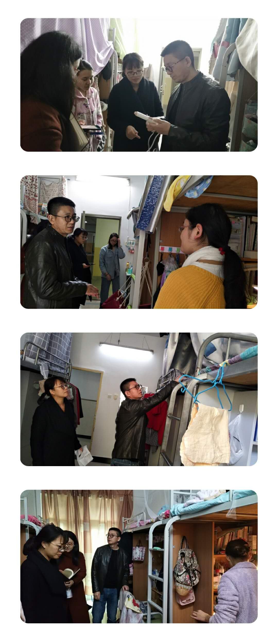 2018年11月8日上午十点,由党总支副书记吴殿华带队,伟德国际1946官网学工组全体成员对学院本科生、研究生宿舍进行了全面检查,重点针对宿舍的卫生环境、安全用电和宿舍文化等方面。