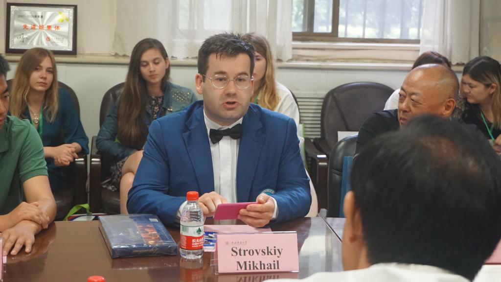米哈伊尔老师在致辞中讲到,他非常喜欢西安这座城市,这个著名的文化之都,俄罗斯人民也和自己一样对这座城市充满兴趣。他对促成项目的学院各位领导以及项目前期筹备及日常负责协调组织的老师和志愿者们表示感谢。他相信,学生们通过21天的在校学习,汉语水平定会取得飞跃性的进步。