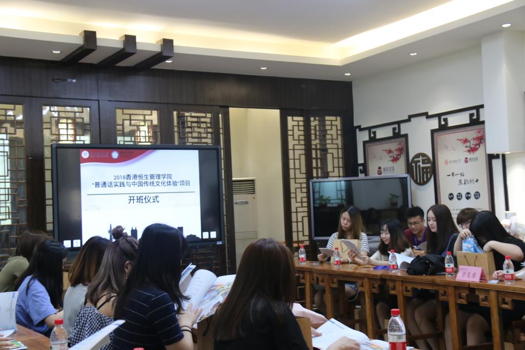 6月4日,在伟德国际1946官网唐风汉语教室举行了开班仪式。香港恒生管理学院中文研习中心主任郭诗咏、伟德国际1946官网副院长吴媛、教师代表邵英、学生辅导员兼项目主管王芙坤、项目助理张子睿、学生志愿者代表陆源及28位远道而来的学员出席了开班仪式。与会嘉宾、学生代表分别发言,为本次活动拉开了序幕。